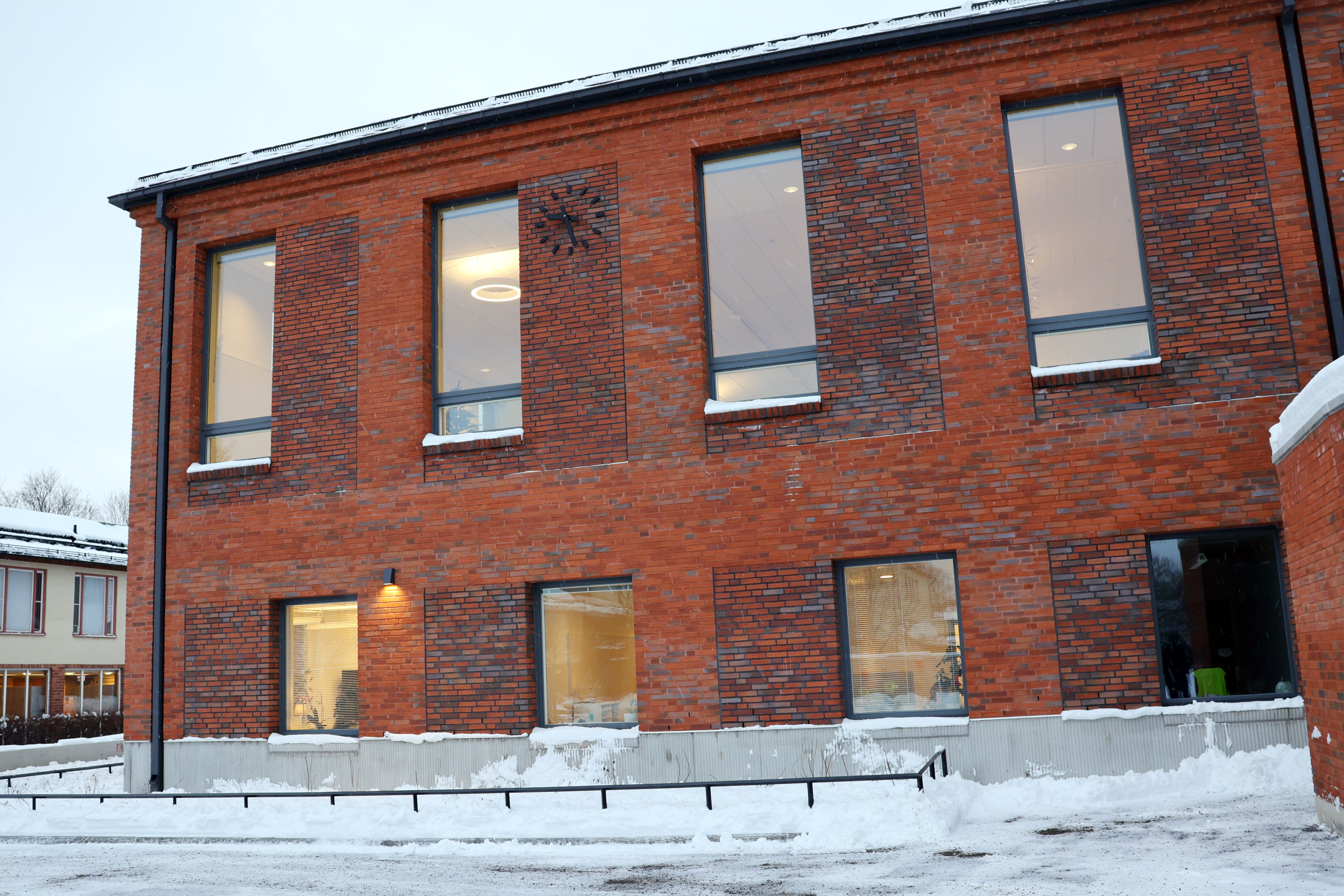 Den nya byggnaden blir den nya huvudentrén till skolan eftersom den ligger i nivå med gatuplan. Den rymmer reception, skoladministration, lärararbetsplatser, anpassad grundskola, elevhälsa samt kök och matsal.